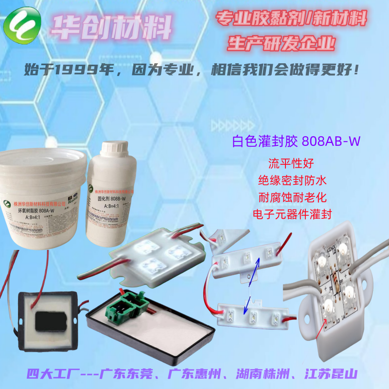 白色雙組份灌封膠、808AB-W密封膠、電子電器產(chǎn)品封裝膠、LED模組